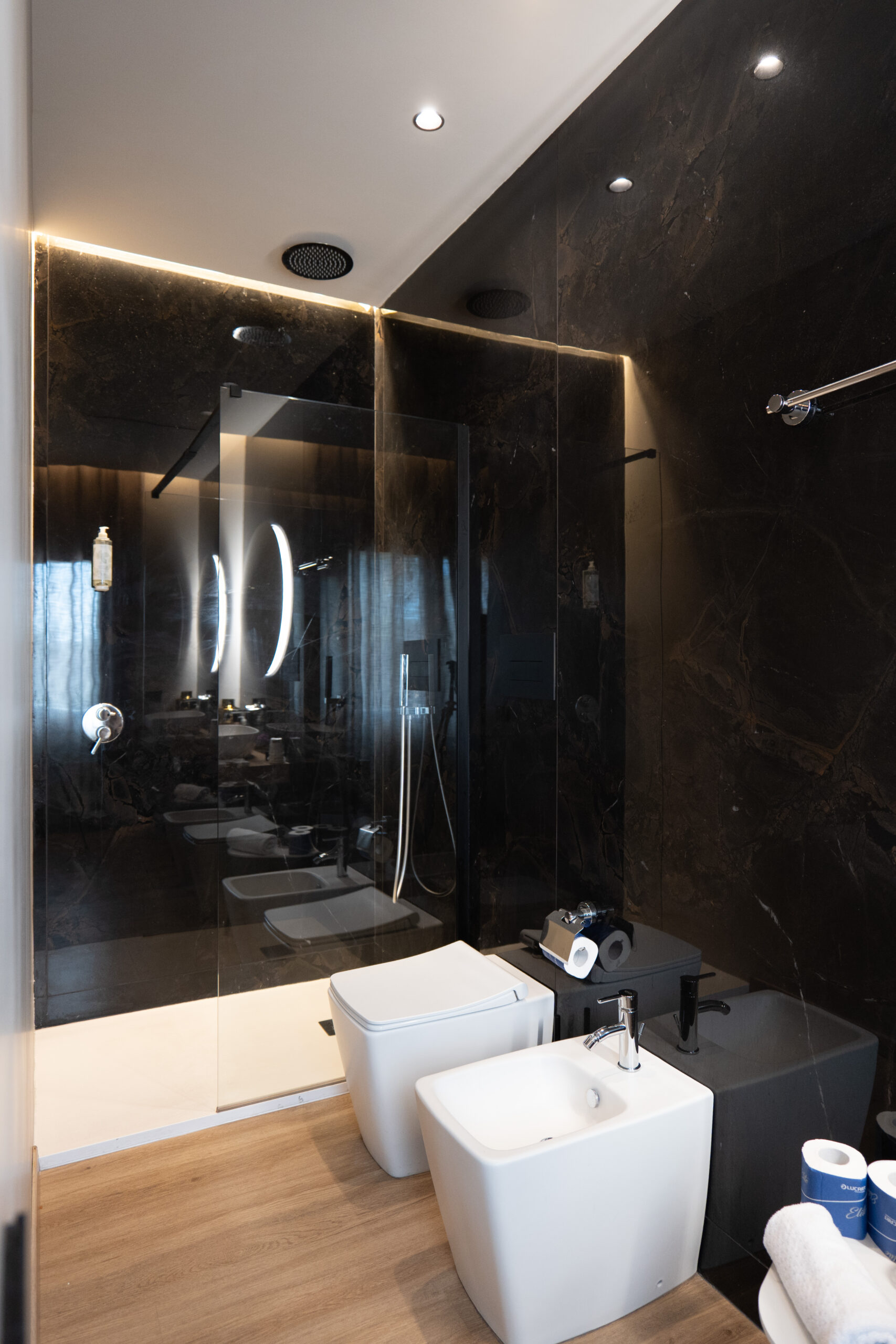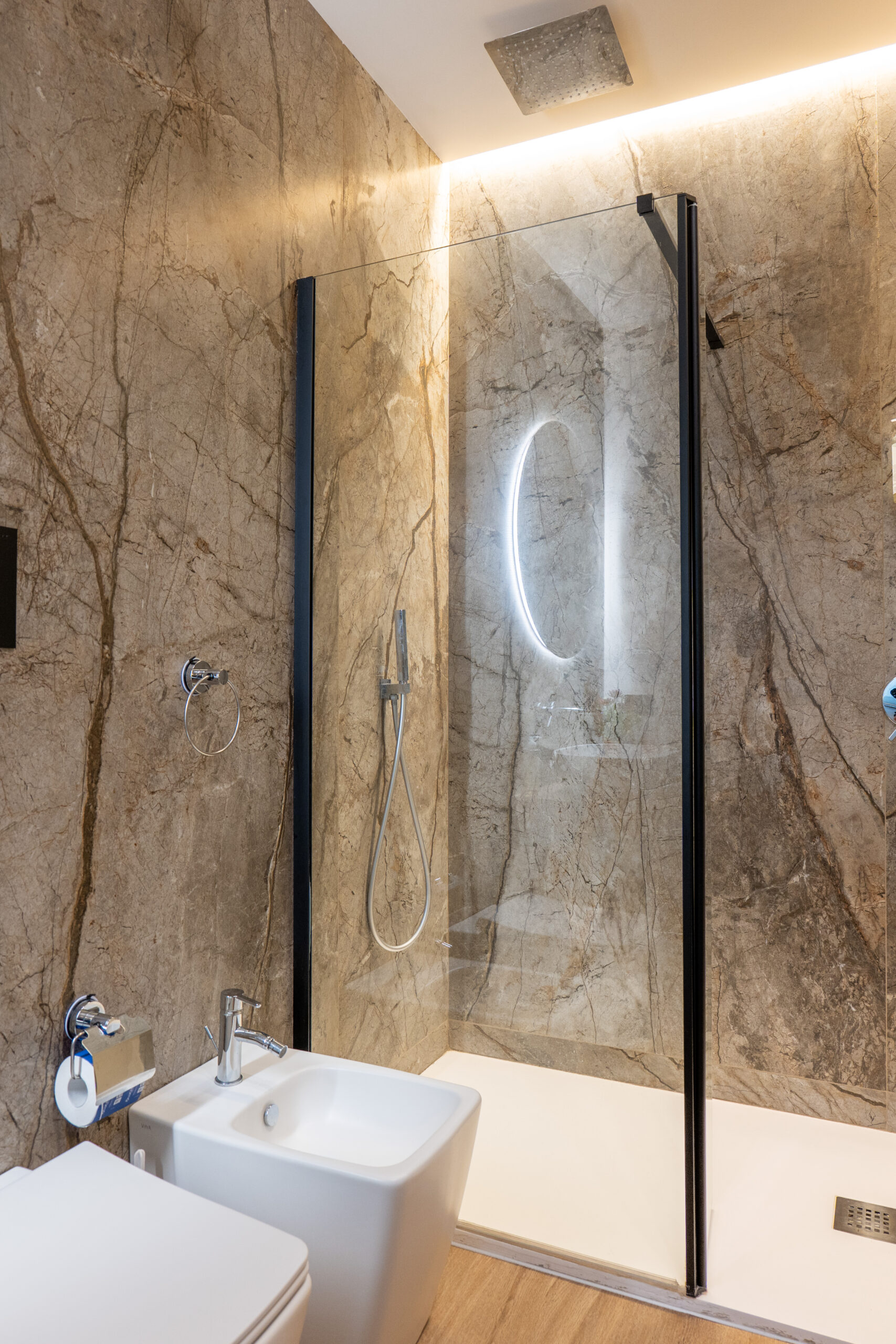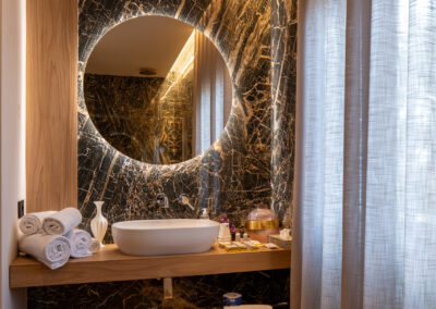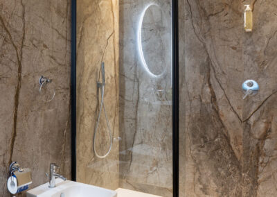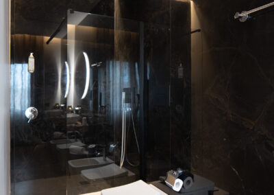 Un bagno raffinato e spazioso, dove ogni dettaglio è curato per garantire comfort e relax totale.