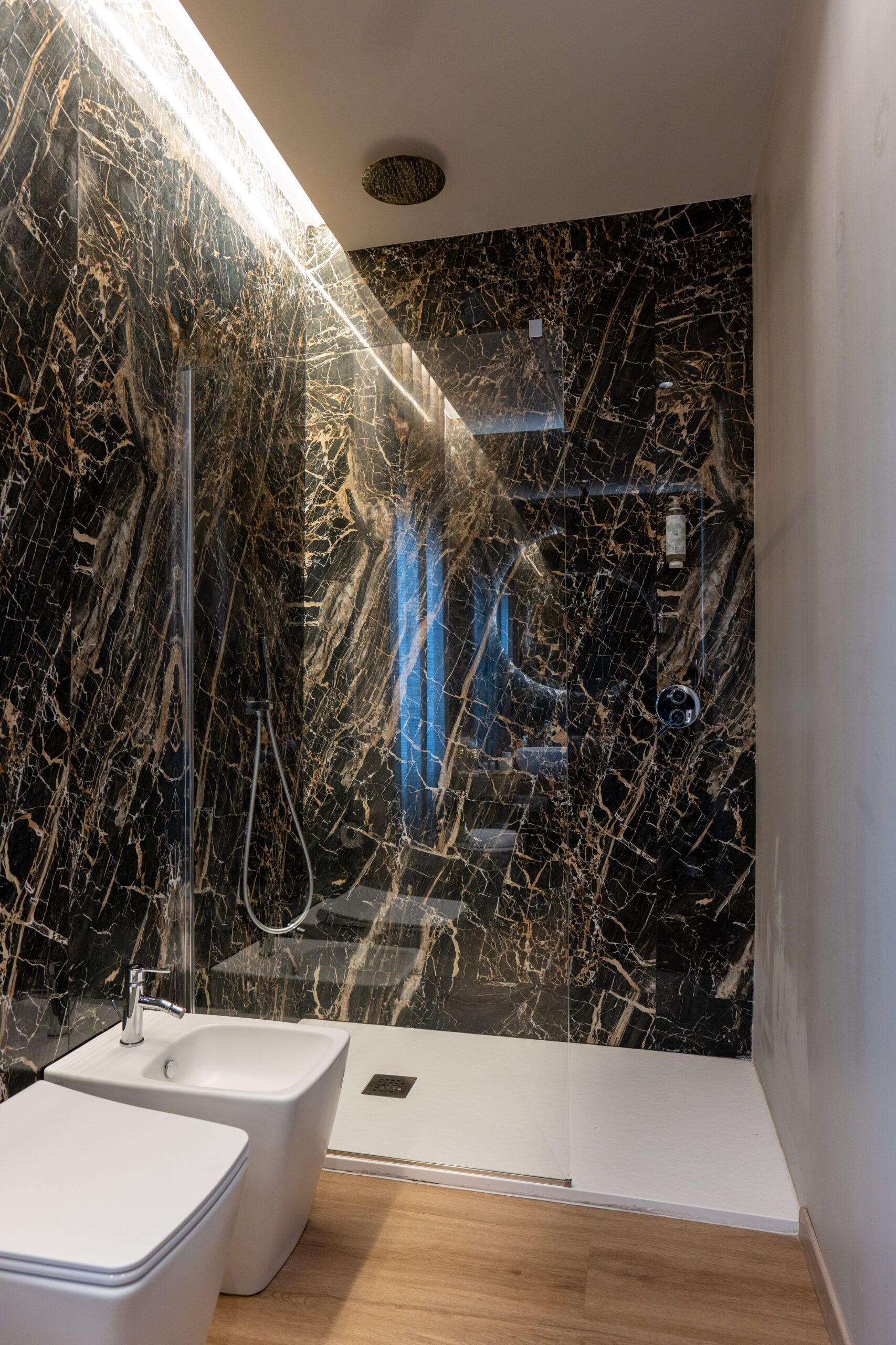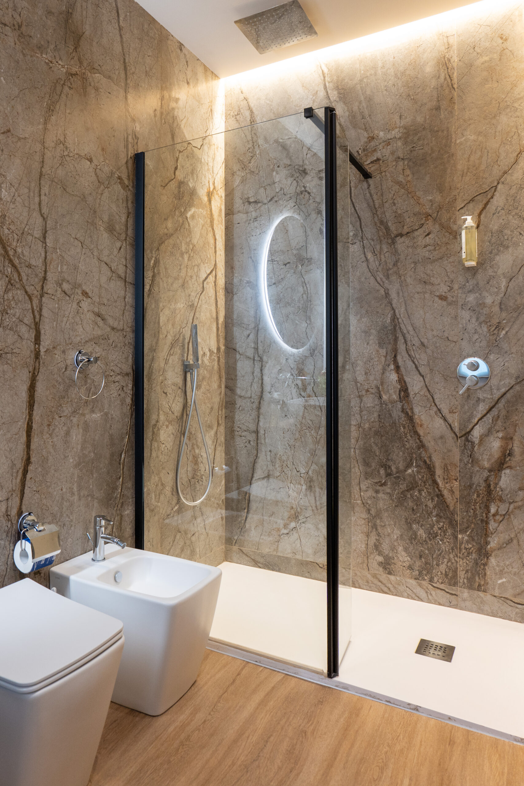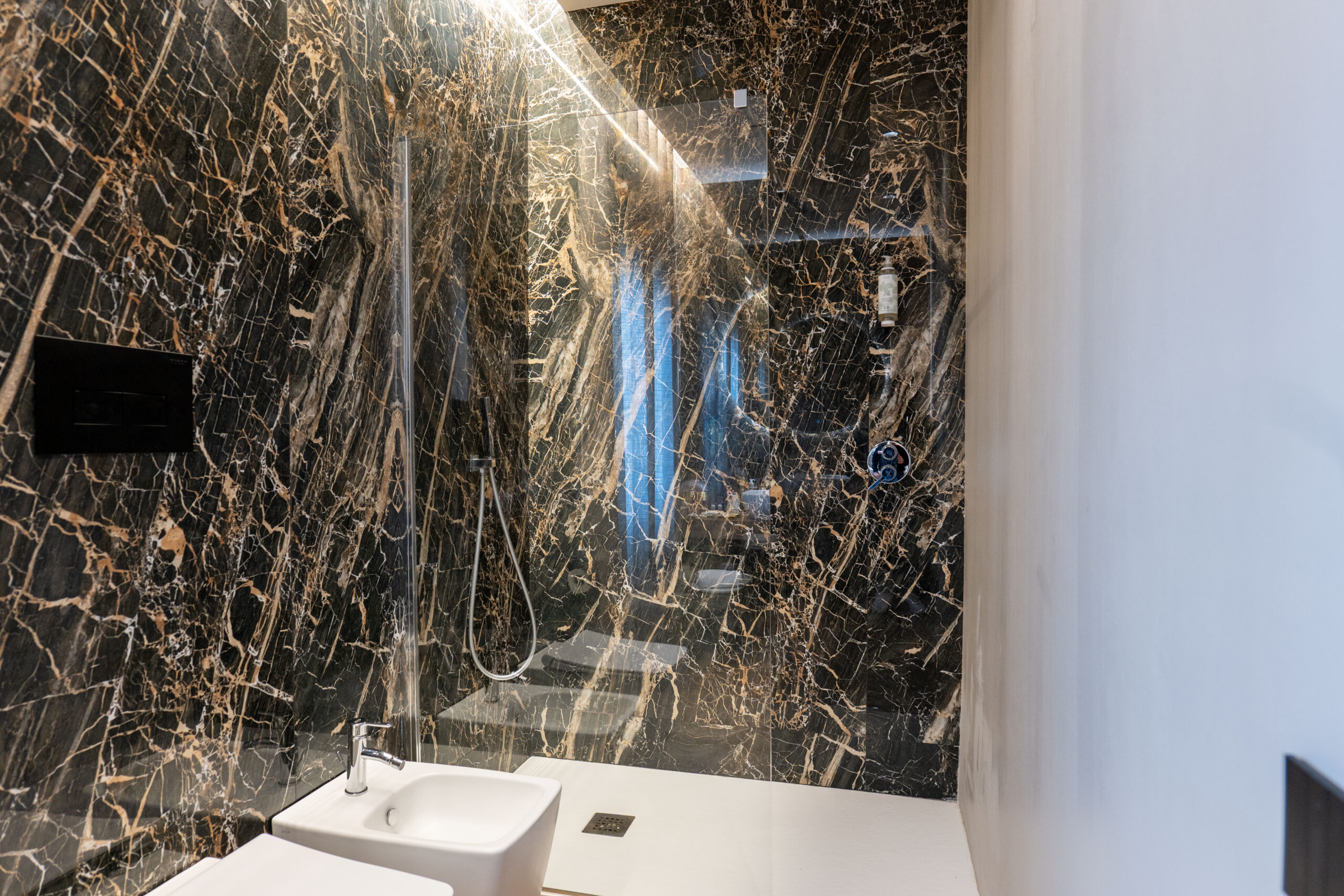 Un bagno raffinato e spazioso, dove ogni dettaglio è curato per garantire comfort e relax totale.