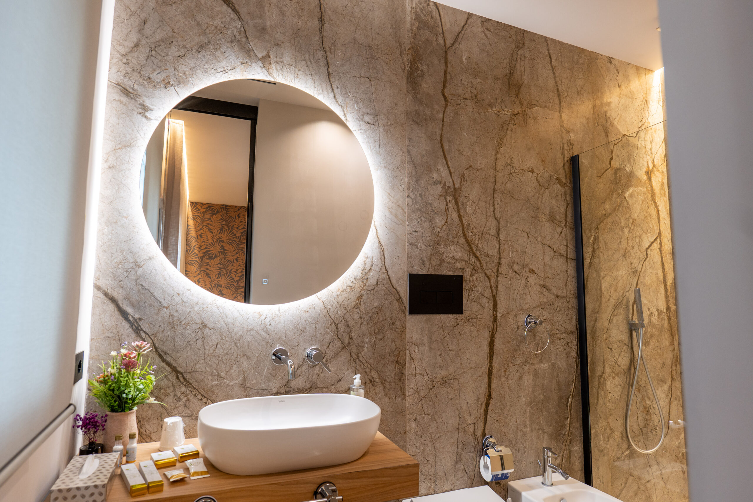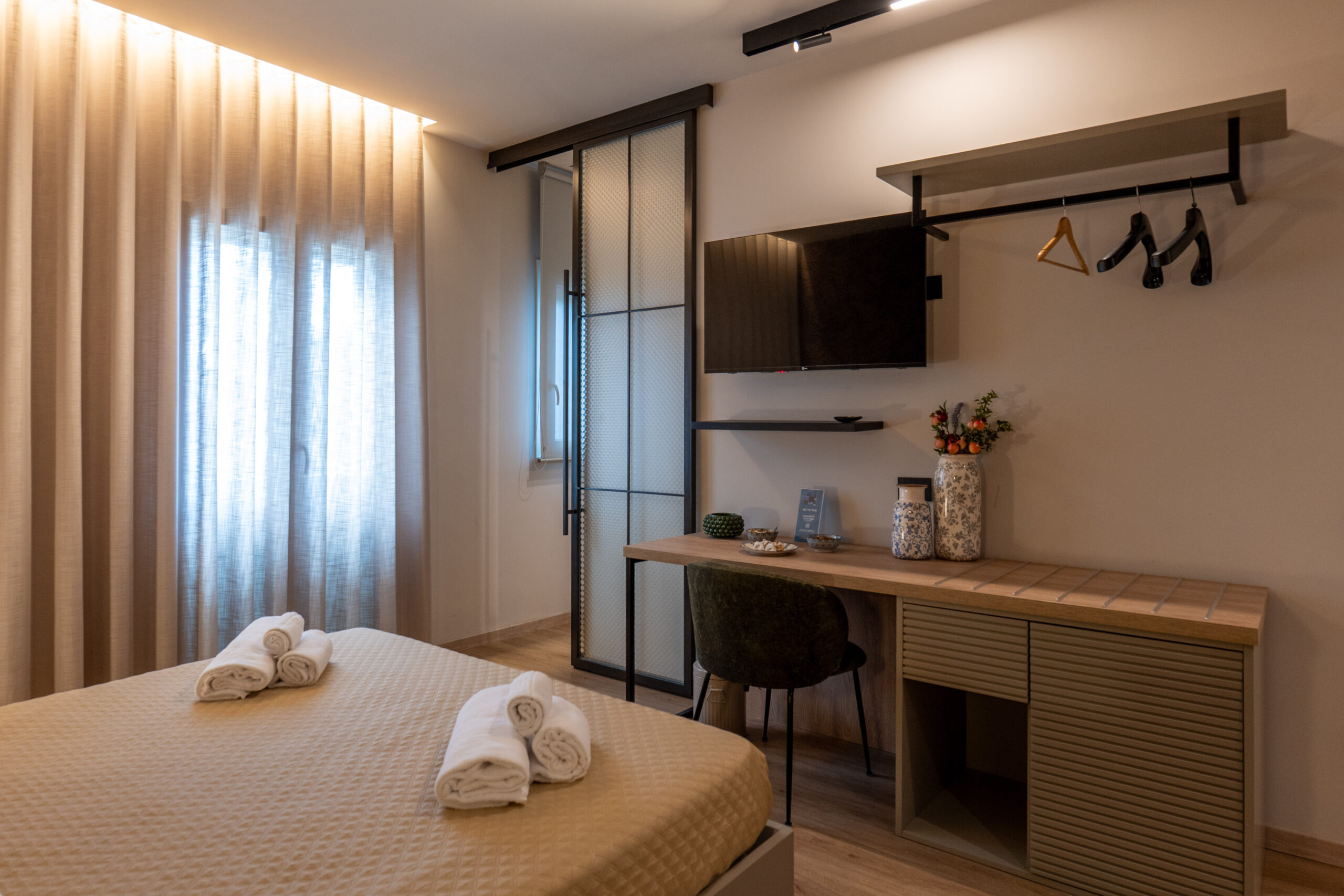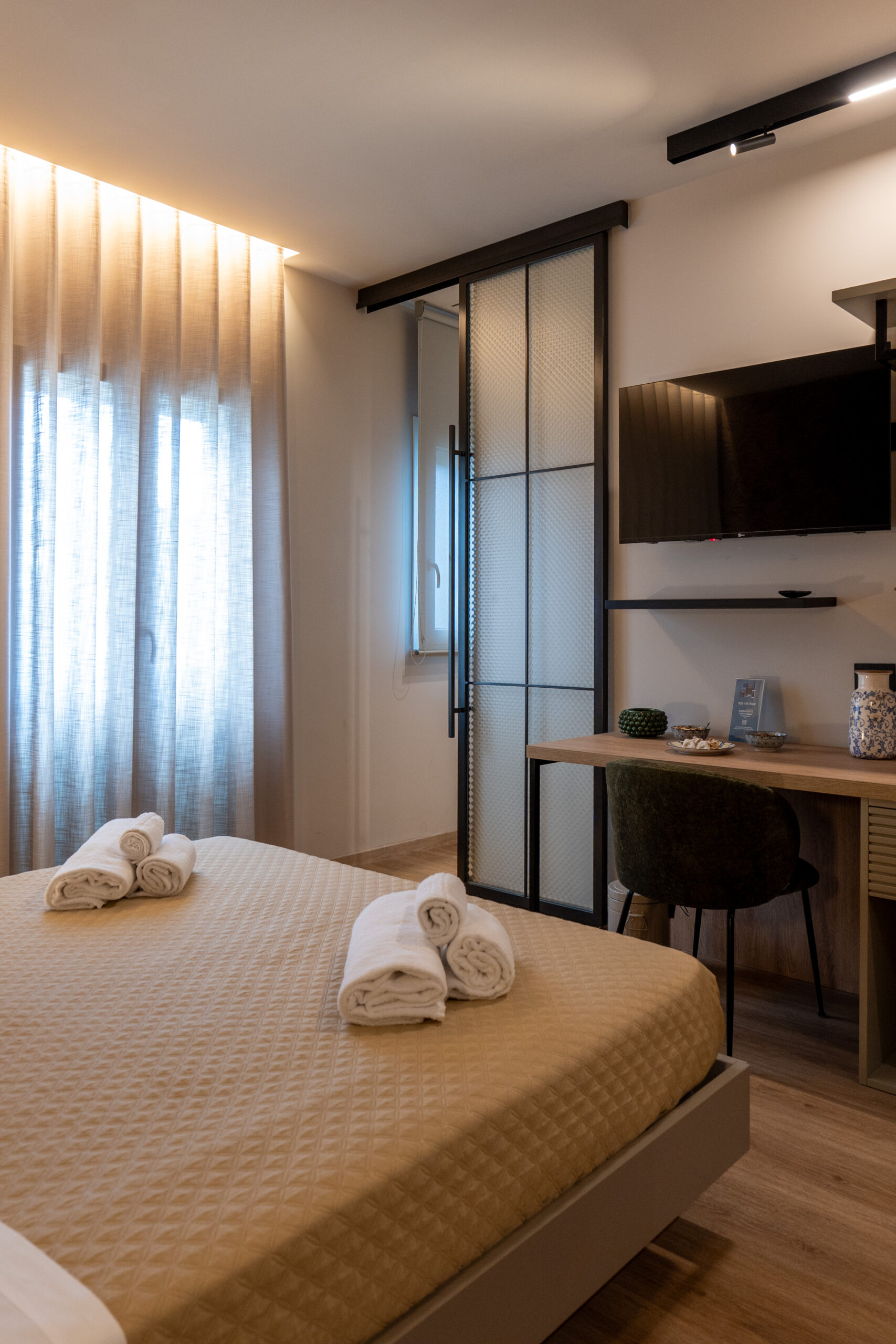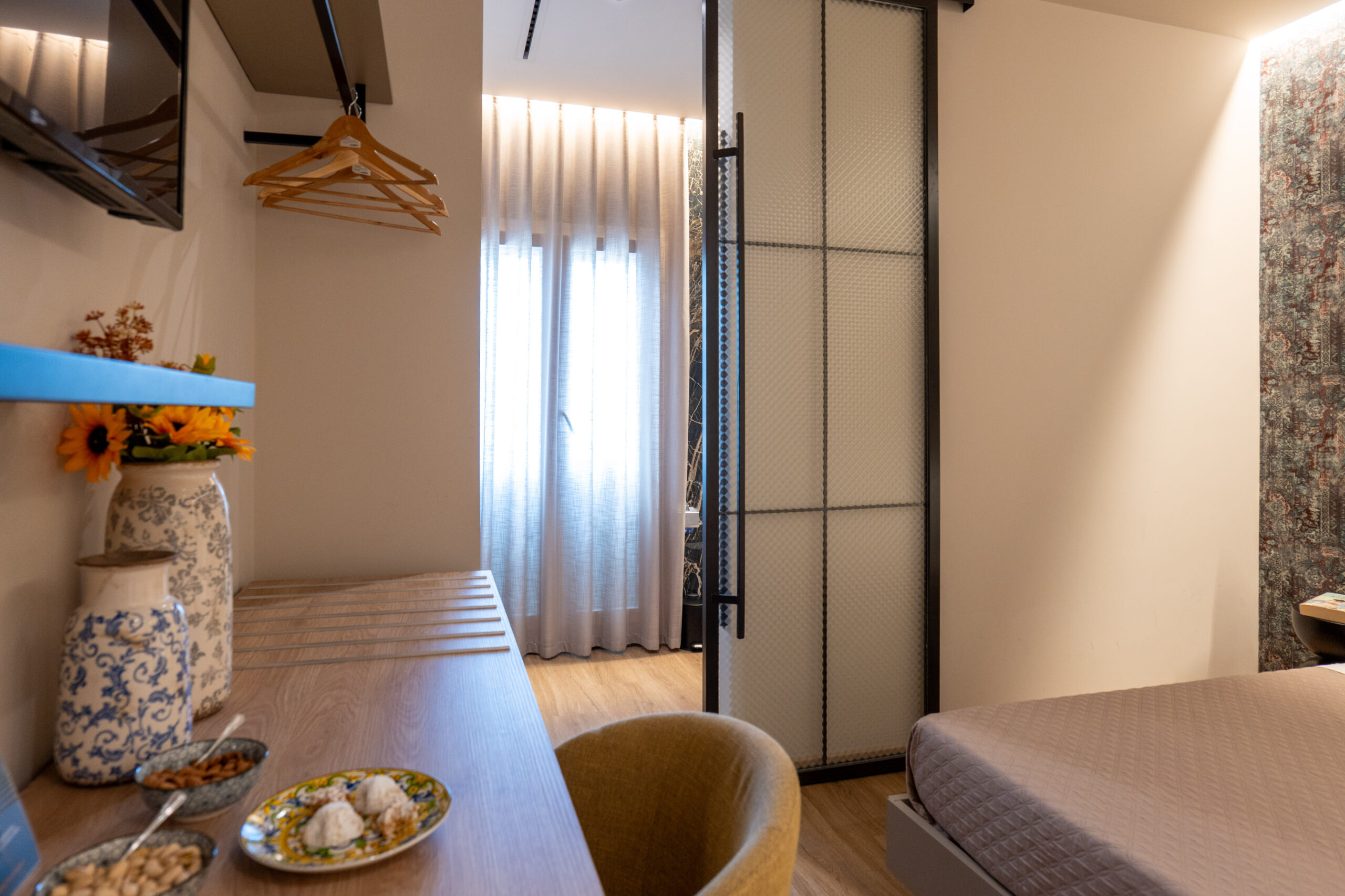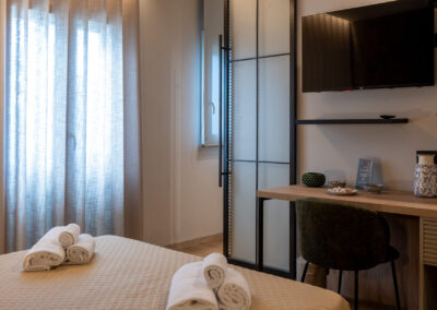 Goditi momenti di svago con una televisione moderna, per un’esperienza visiva unica nel comfort della tua suite.